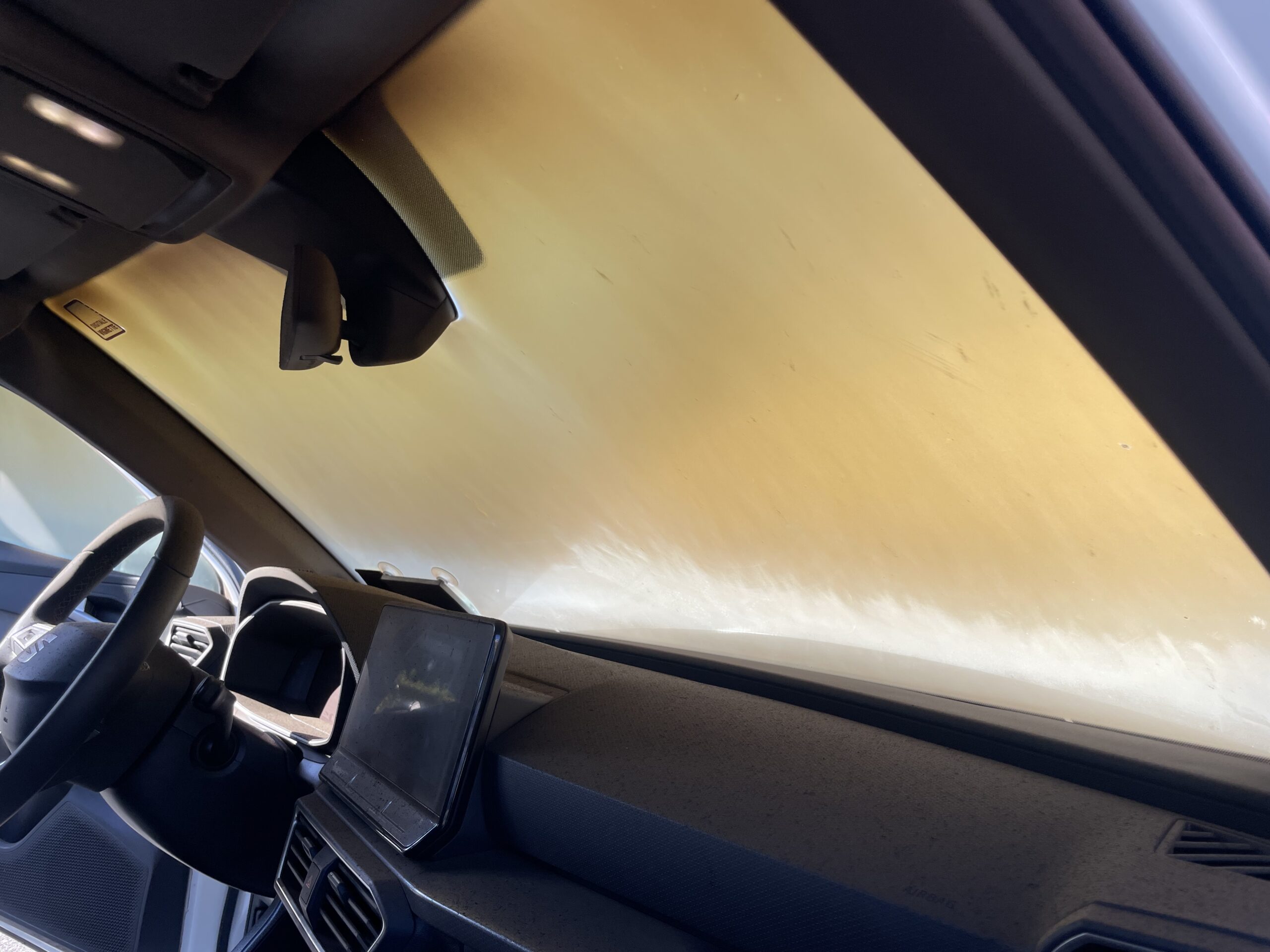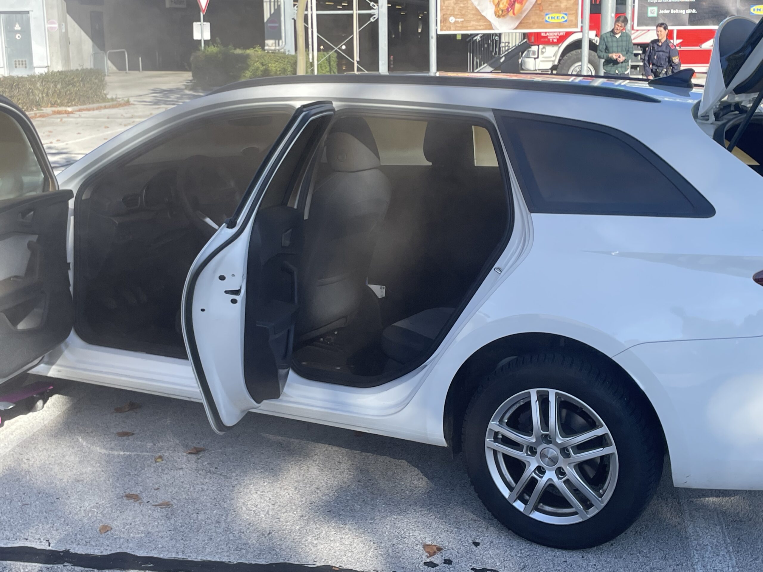 Ein Mietauto steht in der Parkebene des Möbelhauses . Die Scheiben innen sind beschlagen, sodass keine Sicht gegeben ist. Die Scheiben des PKW weisen eine Erwärmung auf, die auf einen Brand schließen lässt. Der Fahrzeughalter wurde über Lautsprechdurchsage zum Fahrzeug gebeten.